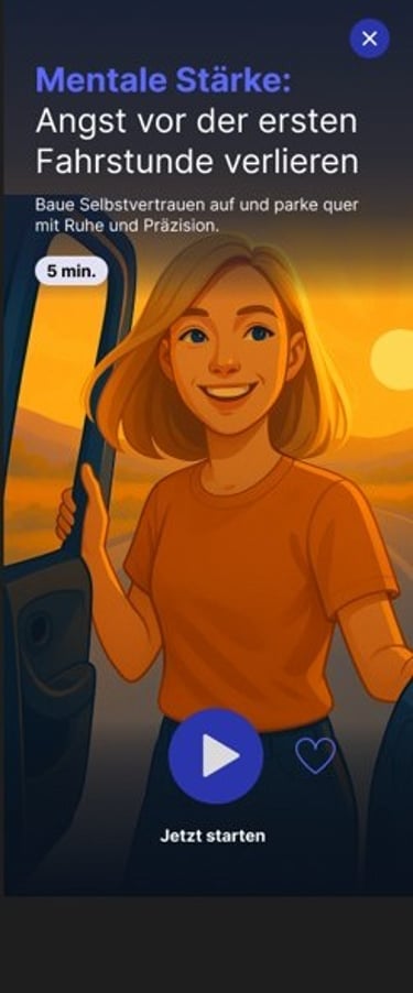 Dein mentaler Anker: Mit kurzen Audios und Visualisierungen wirst du in der Fahrstunde und in der Prüfung ruhiger.